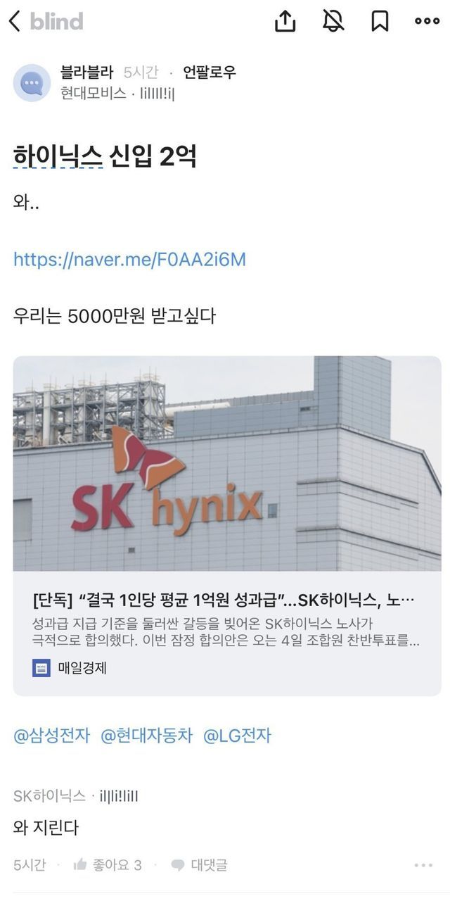 하이닉스 성과급1억 블라인드 반응