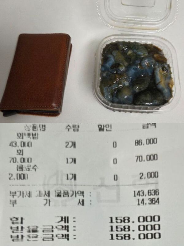 문제는 A씨가 식사를 마친 뒤 가격을 확인하면서 일어났다. A씨는 "나온 해삼이 별로였어서 몇 점만 먹고 그대로 포장해달라고 했는데, 계산할 때 깜짝 놀랐다. 영수증에 '회'라는 이름으로 7만 원이 추가돼 있었는데 사장님께 물으니 '그게 해삼입니다' 하더라"라며 "2~3마리 분량밖에 안 되는 그 양에 7만 원을 받다니, 이게 정당한가 싶다"라고 당시 상황을 설명했다.