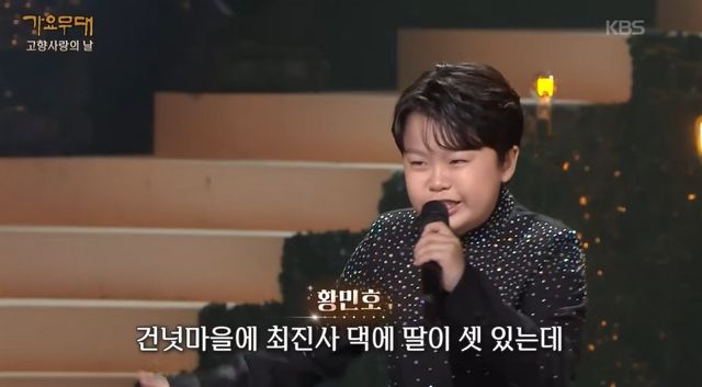 황민호는 지난 1일 방송된 KBS1 ‘가요무대-고향 사랑의 날’ 특집 무대에 올라 ‘최진사댁 셋째딸’ 무대를 선보였다.