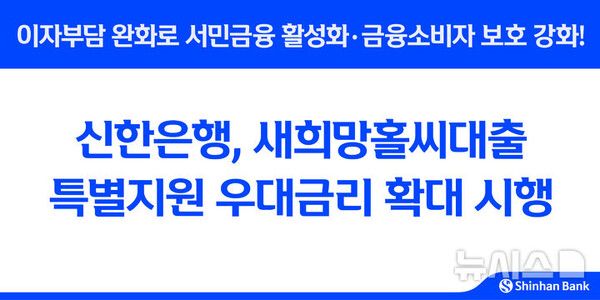 신한은행은 오는 5일부터 금융 취약계층의 이자 부담을 완화하고 소비자 보호를 강화하기 위해 '새희망홀씨대출 특별지원 우대금리'를 최저 연 4%대로 적용한다고 2일 밝혔다.