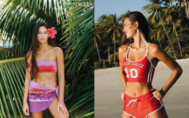 왼쪽부터_팜트리 반두 톱과 쇼츠 파레오, 데이즈데이즈 창립 10주년 기념 시그너처 프린트 톱과 쇼츠.
