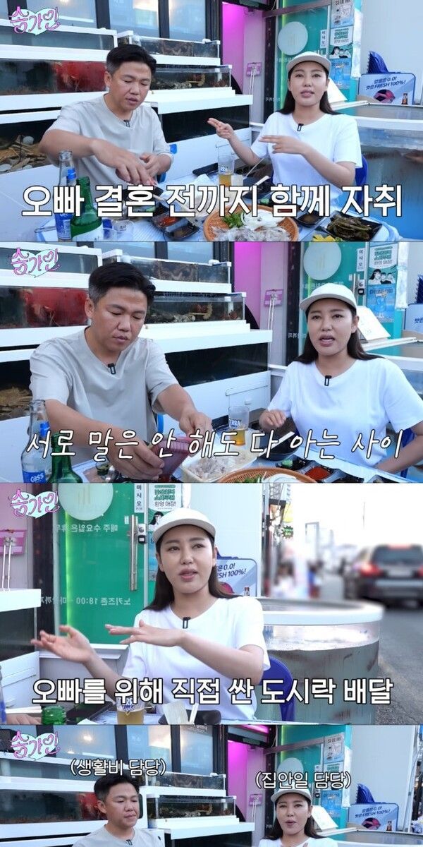 송가인은 고등학교 시절부터 오빠와 함께 자취하며 도시락을 싸서 배달해줬던 일화를 공개했다. 그러면서 "착한 게 아니라 그냥 착하다. 이런 동생 없다"고 너스레를 떨었다. 이에 조성재 씨는 "얘는 한여름에도 보일러를 튼다"며 도시가스비가 28만 원까지 나왔던 웃픈 과거를 폭로하며 티격태격했다.