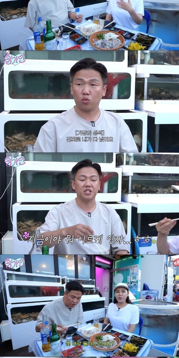 제작진이 "가인 님이 술을 드시는 모습은 처음 보는 것 같다"고 말하자, 송가인은 "반 잔만 마셔도 취한다"며 자신의 약한 주량을 고백했다. 그럼에도 오빠 가족과 함께 식사할 때마다 와인을 준비해둔다는 다정한 면모를 드러냈다. 특히 이번 술자리는 두 사람이 단둘이 마시는 첫 술자리였다고 밝혀 눈길을 끌었다.