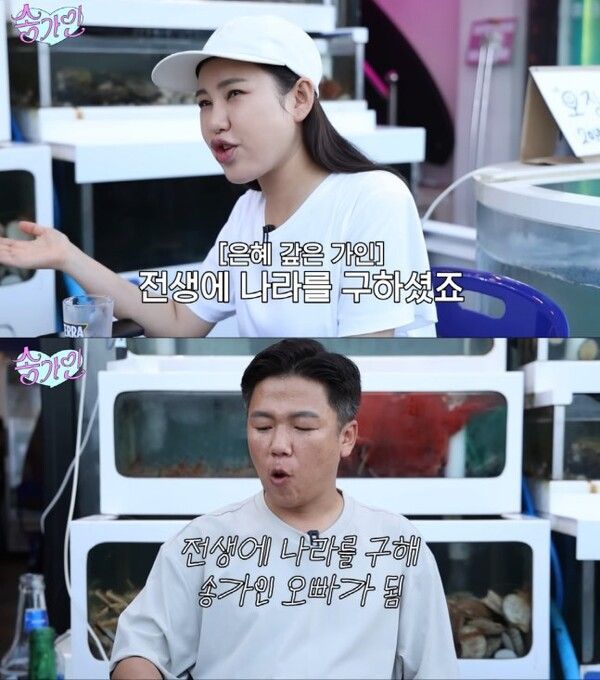 이어진 대화에서 두 사람은 서로 "내가 송가인을 키웠다"와 "내가 오빠를 키웠다"고 주장하며 현실 남매의 면모를 보여줬다. 송가인은 "밥 해주고, 빨래해주고, 도시락까지 싸줬다"며 자신이 오빠를 돌봤다고 말했고, 오빠는 "나는 금전적으로만 대준 것"이라며 반박해 웃음을 자아냈다.