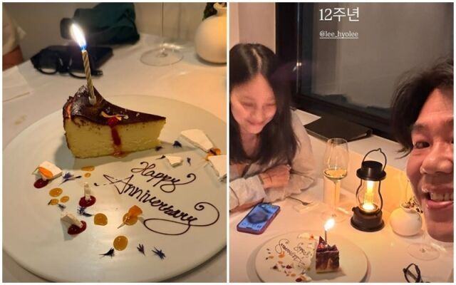 이상순은 2일 자신의 SNS 스토리에 “결혼 12주년”이라는 글과 함께 사진을 게재했다. 작은 조각 케이크에 초를 켜고 결혼 12주년을 자축하는 모습이 인상적이다.