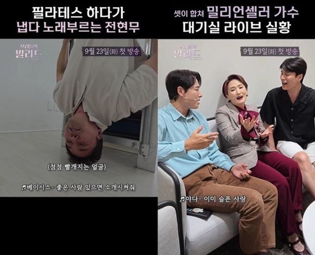 최근 필라테스에 빠진 '트민남(트렌드에 민감한 남자의 줄임말)' 전현무는 필라테스 기구에 거꾸로 매달린 채 베이시스의 '좋은 사람 있으면 소개시켜 줘'로 '무창력'을 뽐내고 있다. 음이 높아질수록 점점 붉어지는 전현무의 안색이 웃음을 유발한다.
