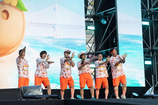 이번 행사의 공식 하와이안 셔츠 차림으로 등장한 ‘무한도전’ 멤버들이 “무한~도전!”을 외치자, 광안리 현장은 단숨에 2000년대 여름 특집 추억 속으로 빠져들었다. 곧이어 박명수, 정준하가 ‘부산’ 이행시로 티키타카를 펼치자, 팬들은 맏형들의 케미에 폭발적인 환호를 보냈고, 멤버들의 재치 있는 멘트와 팬들의 웃음이 교차하며 ‘무한도전’만의 감성과 낭만이 동시에 살아났다.
