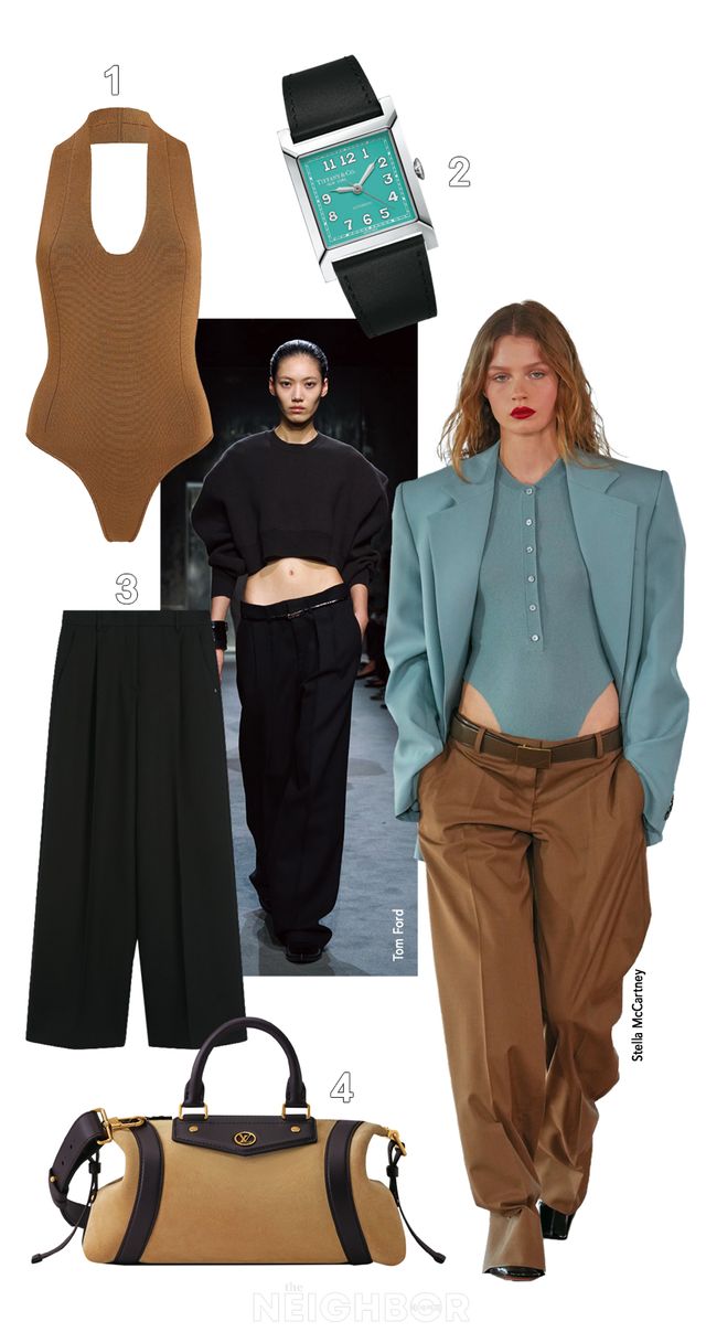 올가을엔 복근 운동에 힘써야 할 것 같다. 아슬아슬하게 허리를 감싸는 로라이즈 팬츠가 부활했으니 말이다. 하지만 Y2K 무드의 힙하고 영한 스타일과 달리, 이번 시즌 로라이즈는 포멀한 감각으로 연출해야 한다. 골반에 간신히 걸치던 청바지 대신 정갈하게 잡힌 핀턱 슬랙스로 완성한 룩은 어딘가 섹시하고, 어딘가 쿨하다. 로라이즈는 배를 과감하게 드러낼 때 매력이 배가되니 니트 크롭트 톱이나 과감한 컷아웃 보디슈트와 함께 매치해 관능미를 뽐내보자.