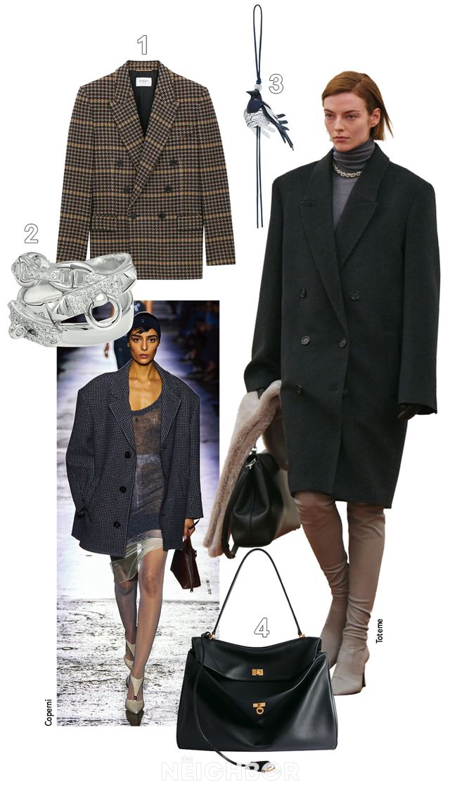 1980년대의 파워숄더 트렌드가 한층 모던하고 세련된 스타일로 돌아왔다. 어깨 패드로 구조적인 라인을 살린 재킷과 코트는 군더더기 없는 테일러링과 절제된 디자인으로 힘 있는 실루엣을 완성한다. 과장된 어깨는 미니멀한 원피스나 슬림한 하의와 매치해 대비가 돋보이도록 연출하는 것이 핵심. 톤온톤의 그레이, 블랙 같은 모노톤 팔레트를 선택하면 시크한 무드를 극대화할 수 있다.