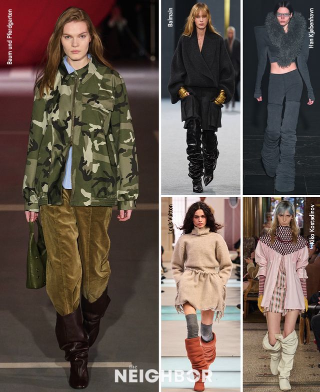 허벅지를 타이트하게 옥죄던 사이하이 부츠의 인기가 저물고, 자연스러운 주름이 매력적인 슬라우치 부츠의 시대가 도래했다. 슬라우치 부츠의 장점은 여유로운 실루엣이 주는 편안함에 주름을 조절해 원하는 길이와 형태로 연출할 수 있다는 것. 루이 비통 런웨이처럼 풍성한 실루엣의 미니드레스와 매치하면 다리가 길어 보이는 효과를 선사하기도 한다. 밋밋한 부츠를 색다르게 활용해보고 싶다면 부츠 지퍼를 과감히 내려 슬라우치 부츠로 연출해보자. 유연한 가죽이나 스웨이드 소재면 더할 나위 없겠다.