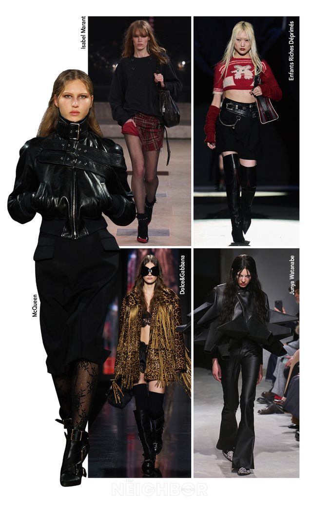 버클이 잔뜩 달린 가죽 재킷과 부츠, 레오퍼드 무늬와 타탄체크, 망사 타이츠. 이런 강렬한 소재를 망라한 펑크 트렌드가 다시금 수면 위로 떠올랐다. 두터운 마니아층을 보유한 펑크 스타일은 어딘가에 늘 존재하고 있었지만, 이번 시즌 유수의 디자이너들에 의해 다채롭고 개성 넘치는 모습으로 새롭게 돌아온 것. 일러스트 포인트 니트로 사랑스러운 터치를 더한 앙팡 리쉬 데프리메, 커다란 스터드 장식 가죽 재킷으로 전위적인 펑크 정신을 표현한 준야 와타나베 등 2025 F/W 버전의 뉴 펑크 스피릿을 감상해보자.