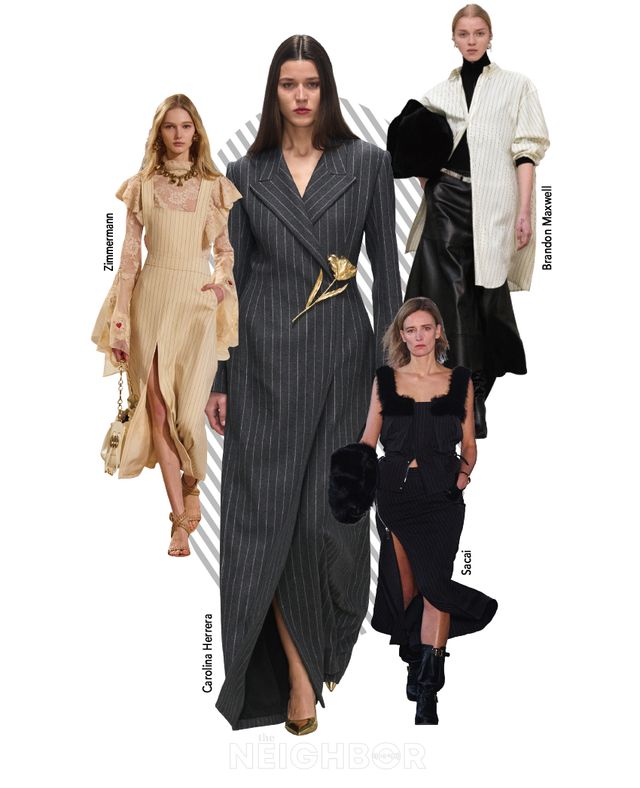 과거 전형적인 비즈니스 패션에서 자주 보인 핀스트라이프가 이번 시즌 룩 곳곳에서 포착되었다. 그레이 맥시 코트에 핀스트라이프를 더해 포멀한 무드를 극대화한 캐롤리나 헤레라를 시작으로 러플 장식의 크림색 핀스트라이프 드레스를 런웨이에 세운 짐머만, 퍼 디테일과 카고 포켓, 지퍼를 장식해 하우스 특유의 아방가르드한 드레스를 선보인 사카이 등 브랜드도 활용 범위도 다채롭다. 이번 시즌 핀스트라이프 활용법에 한 가지 공통점이 있는데, 바로 무채색이나 같은 컬러 아이템과 함께 매치했다는 것이다. 패턴 고유의 클래식한 느낌을 강조하면서 세련된 인상을 남길 수 있는 팁이니 기억해둘 것.