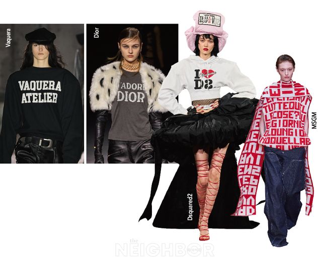 돌아오는 계절에는 마음속에만 담아두었던 문장을 대담하게 드러내도 좋을 듯하다. 직관적인 메시지 전달이 가능한 레터링 티셔츠가 새로운 트렌드로 부상했기 때문이다. 티셔츠에 로고 레터링을 크게 강조한 바퀘라와 디올, 그리고 ‘I♥NY’ 슬로건을 패러디해 후디에 옮긴 디스퀘어드2까지. 디자이너가 전달하고자 하는 메시지를 가장 쉽게 캐치할 수 있음은 물론, 스타일의 정체성을 무심하고 쿨하게 드러낼 수 있는 레터링 톱의 매력에 빠져보길.