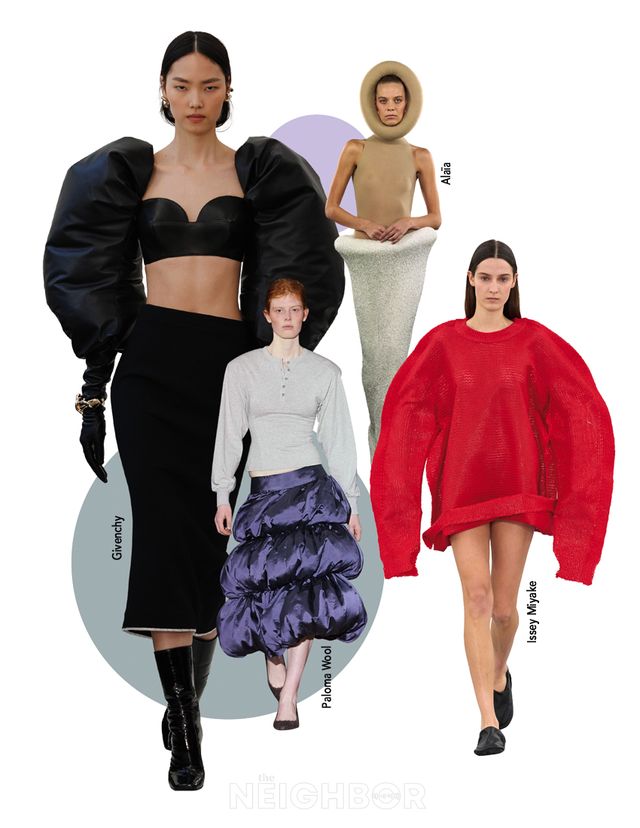 이번 시즌 런웨이에는 둥근 실루엣을 강조한 다종다양한 룩이 등장해 시선을 끌었다. 거대한 퍼프 슬리브를 선보인 지방시, 양손 끝을 부드러운 곡선으로 이은 듯한 벌키한 실루엣의 이세이 미야케, 완벽하게 둥근 후드로 독특한 인상을 남긴 알라이아가 대표적이다.