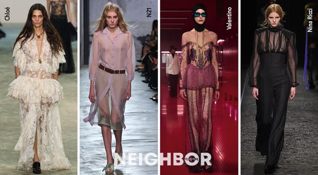퍼 코트가 F/W 시즌의 타당한 트렌드라면, 런웨이에 펼쳐진 투명한 시어 룩의 향연은 다소 의외로 느껴질 수 있다. 그러나 차가운 바람 속에서 스킨을 드러낼수록 트렌디해 보인다는 건 오래된 패션 공식. 발렌티노는 비즈로 섬세하게 장식한 시어 드레스에 발라클라바를 착용해 위트를 더했고, N21은 투명한 셔츠와 미디스커트를 매치한 감각적인 레이어드 스타일링을 선보였다. 리얼웨이에서 시스루 룩을 즐길 현실적인 방법을 모색하고 있다면 니나 리치 런웨이를 주목할 것. 시스루 톱에 가슴 밑까지 올라오는 하이웨이스트 팬츠를 매치해 노출은 줄이면서 은근한 관능미를 드러낸다.