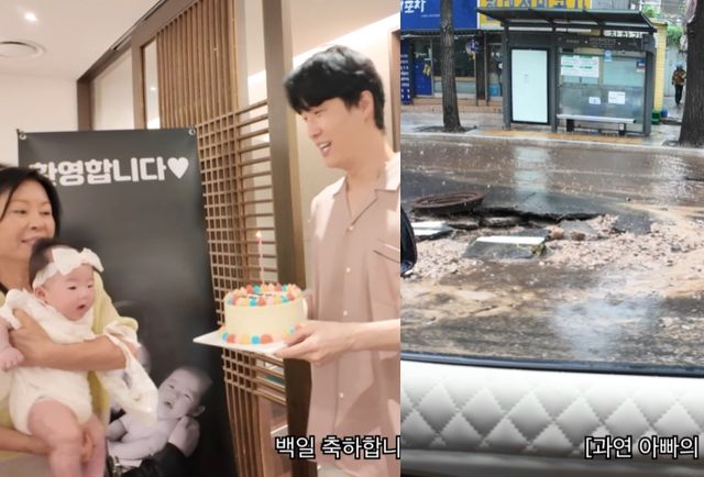 딸의 100일 잔치를 맞아 고깃집에 방문한 원혁은 창문으로 바깥을 바라보며 "저 밖에 지금 차들 물에 다 잠긴 거 보이냐, 저희 지금 여기 오다가 못 올뻔했다. 이게 무슨 일인지, 하늘에 구멍이 뚫린 것처럼 평창동이 물에 잠길뻔했다"라며 폭우에 도로가 물에 잠긴 것을 보여주었다.