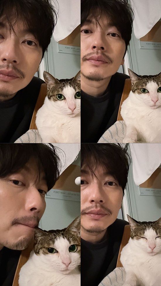 이동휘는 21년도에 영화 촬영지에서 만나 구조한 고양이 '모리'와의 셀카도 자랑했다. 모리와 똑같은 표정, 똑같은 구도를 맞춘 채 착 붙어 사진을 남겼다.