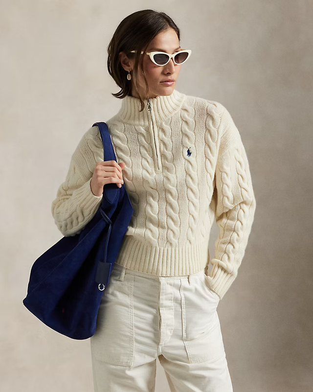 클래식한 폴로 랄프 로렌의 케이블 니트 톱을 선택한 크리스탈. 아이보리 톤의 라운드 넥 디자인으로 깔끔한 인상을 완성한 그녀는 짙은 네이비 톤에 파이핑 디테일이 있는 캐주얼 쇼츠를 매치해 스포티한 느낌을 살렸다. 프레피 디자인의 대명사인 폴로 케이블 니트와 조화롭게 어울려 경쾌하고 활동적인 분위기를 완성한 스마트한 스타일링이다. 여기에 커다란 호보 백을 더해 전체 톤을 부드럽게 연결했다. 전형적인 프레피 감성을 담아낸 현대적 해석으로 데일리 룩은 물론 여행룩으로도 손색이 없는 꾸안꾸 스타일의 정석이자 롱 슬리브 톱과 쇼츠 조합의 완벽한 밸런스다.