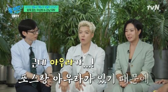 (엑스포츠뉴스 오수정 기자) '유퀴즈'에서 강남이 아내인 이상화에게 끊임없이 극존칭을 쓰는 모습으로 웃음을 줬다.