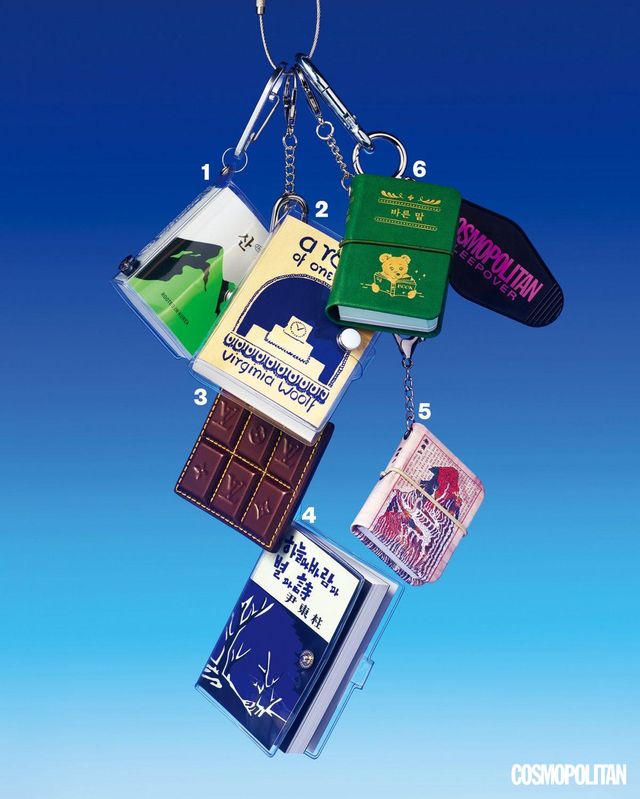 1 올해 서울국제도서전에서 ‘한국에서 가장 아름다운 책’ 대상을 받은 〈산239〉 미니 북 키링. 출판사 오이뮤, 1만8천원. 2 시대를 초월하는 페미니즘 비평 에세이, 버지니아 울프의 〈자기만의 방〉 초판본. 출판사 더스토리, 7천5백원. 3 루이 비통 초콜릿 바 참, 33만원. 4 1948년 초판 당시 원문과 표지 디자인을 그대로 살린 윤동주 시인의 〈하늘과 바람과 별과 시〉. 출판사 더스토리, 7천5백원. 5 영화 〈헤어질 결심〉의 개봉 3주년을 기념해 명대사를 모아 키링 북으로 제작했다. 출판사 크낵, 1만9천원. 6 묘하게 헷갈리는 띄어쓰기와 문법 등을 정리한 〈바른 말〉 키링 북. 출판사 민음사, 가격미정.