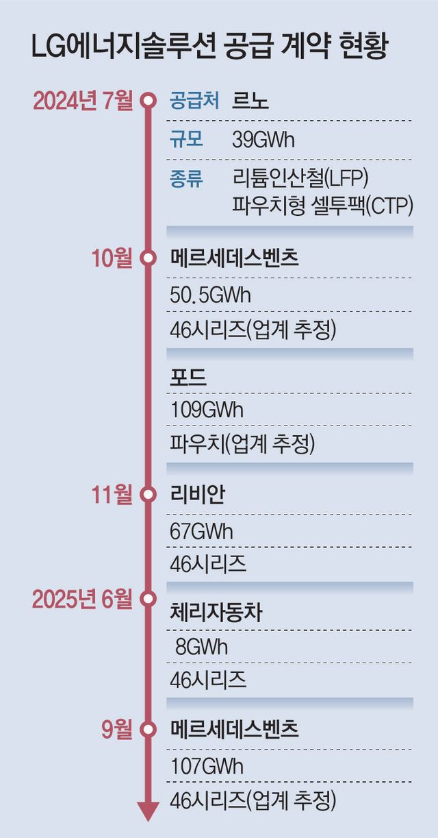 이번 벤츠와의 계약은 지금까지 발표한 46시리즈 공급 계약 중 가장 큰 규모다. 이번 계약 물량인 100GWh는 전기차(70kWh 기준) 약 150만 대를 생산할 수 있는 규모다. 관련 업계에서는 배터리 가격이 1kWh당 90∼110달러 선에서 형성된 점을 고려해 계약 금액을 15조 원 안팎으로 추산하고 있다. 지난해 벤츠와 총 50.5GWh 규모로 진행된 배터리 공급 계약도 46시리즈였던 것으로 전해진다.