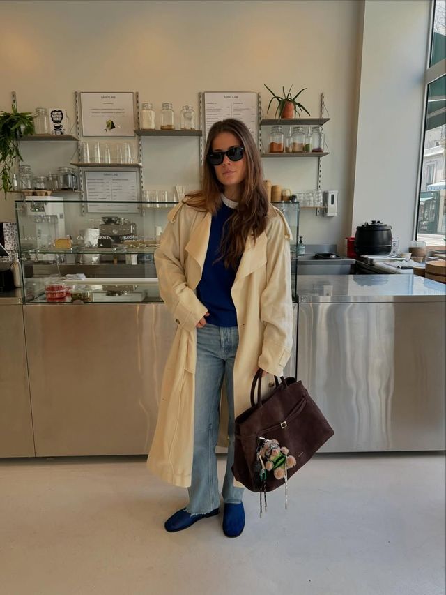 트렌치 코트의 본질은 결국 베이지에 있다. 군용 코트에서 시작해 패션의 상징이 된 뒤로, 수많은 변주가 있었지만 가장 오래 살아남은 건 바스락한 질감이 살아 있는 베이지 트렌치 코트다. 김나영과 기은세처럼 담백하게 길이와 컬러감에 힘을 싣는 방법은 가장 정직하고 강력한 접근법이다. 여기에 소매를 걷거나 숏츠와 함께 매치하면 단번에 경쾌한 리듬이 생겨, 포멀과 캐주얼을 자유롭게 오가는 유연함도 느낄 수 있다. 인플루언서 Manon De Velder는 심플한 라이트 데님에 쨍한 블루 니트와 슈즈를 매치해 베이지 특유의 무게감을 산뜻하게 비틀었다. 작은 컬러 포인트만으로도 전통적인 베이지 트렌치 코트가 훨씬 현대적이고 생동감 있게 재해석될 수 있다는 사실을 증명한다.