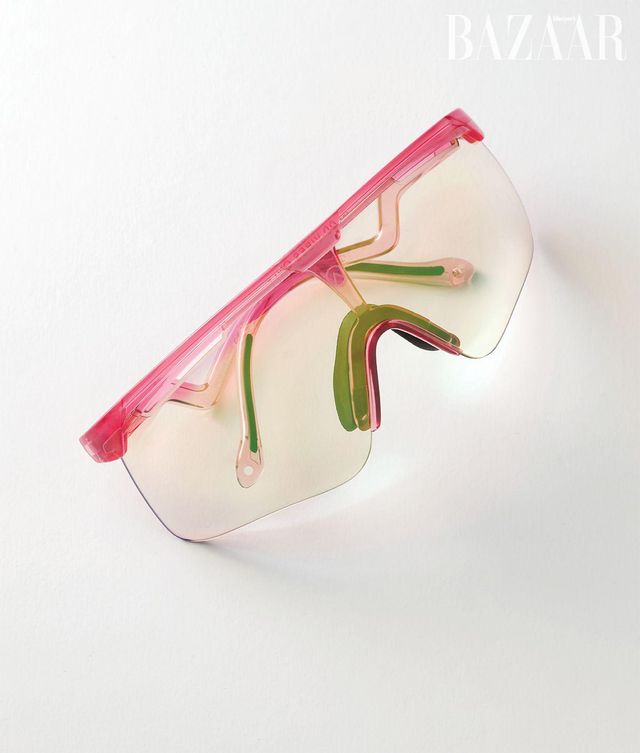 체리 글로시 프레임에 그린 미러 코팅의 옐로 틴티드 렌즈를 더한 ‘델타’ 선글라스는 34만원 Alba Optics.