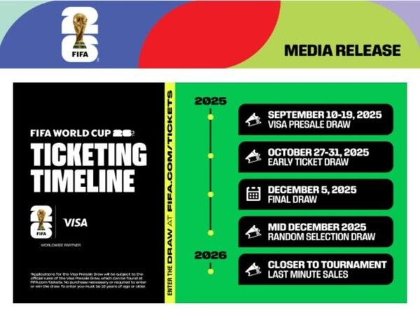 뉴시스 보도에 따르면, FIFA는 4일(한국 시간) 2026 북중미월드컵 입장권 판매 일정을 발표했다.
