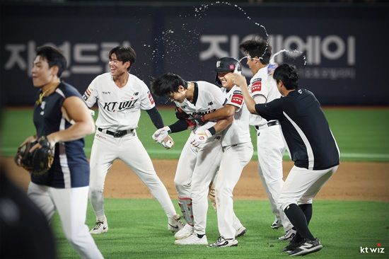 이후 안현민의 좌중간 2루타가 터지며 허경민이 득점에 성공했고, 다음 타자 장성우가 좌월 투런포까지 터트리며 KT가 7-2까지 앞서나갔다.
