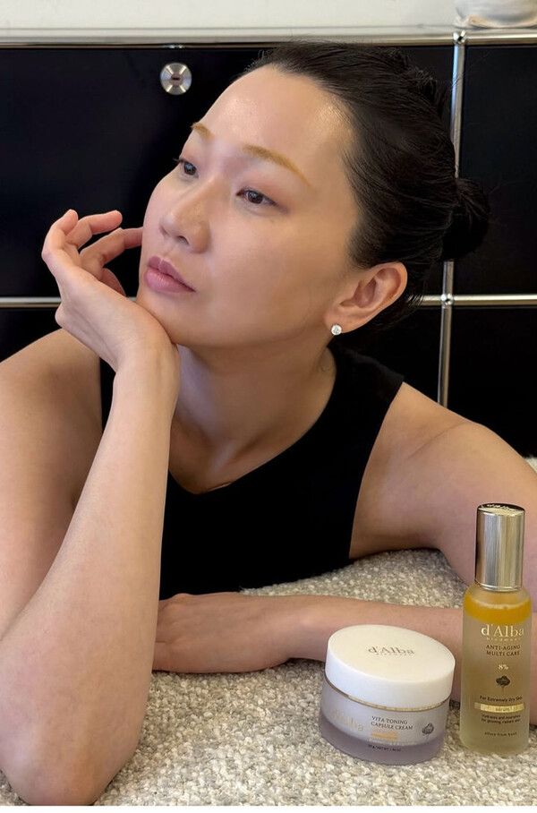 사진 속 장윤주는 민낯으로 포즈를 취하고 있다.