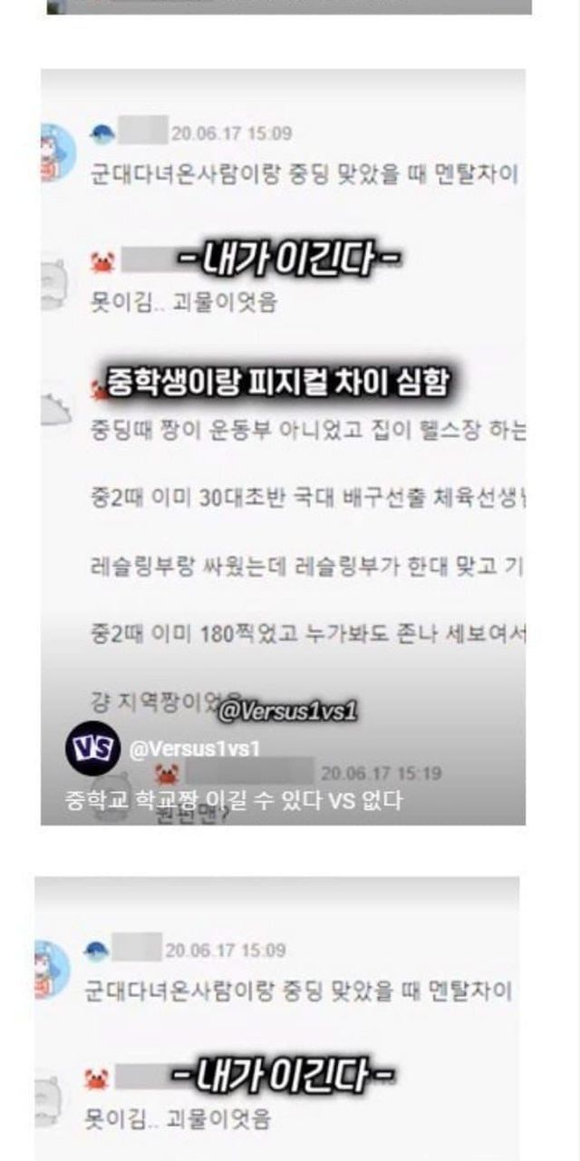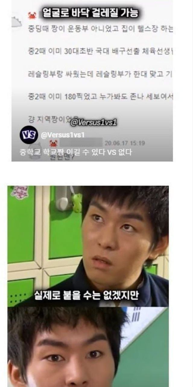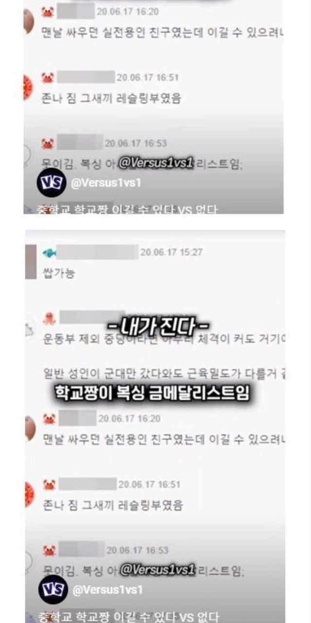 지금 싸움실력으로 중딩때 학교짱이랑 싸우면