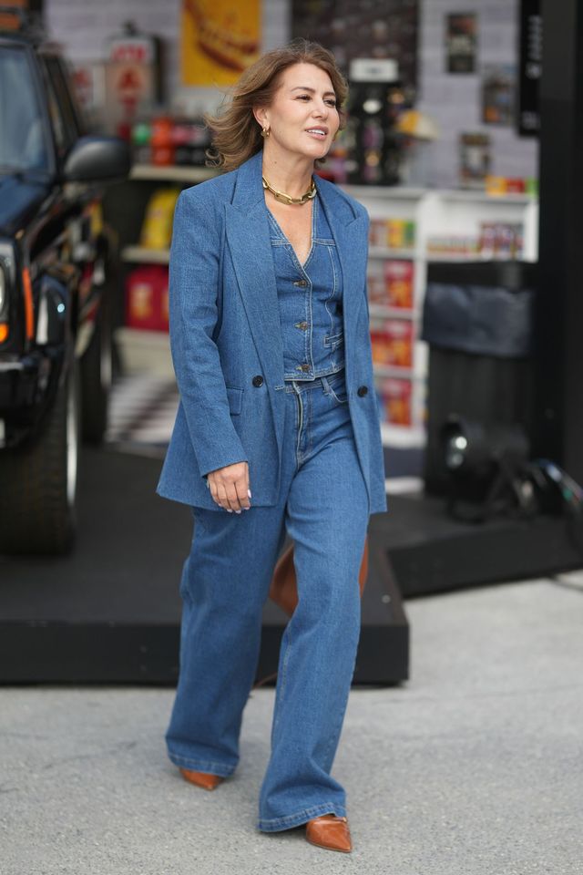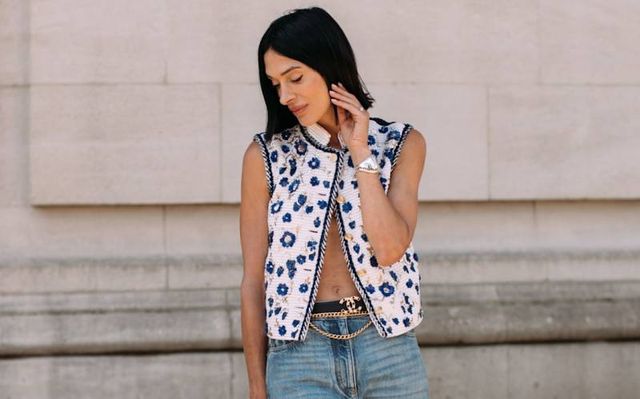 데님 블레이저와 팬츠, 베스트까지 맞춰 입은 데님 수트 룩의 단정한 실루엣은 오피스웨어 못지않게 날렵한 존재감을 드러냅니다. 클래식한 수트 실루엣에 데님의 캐주얼한 질감을 더하니 포멀함과 여유로움이 동시에 살아나죠. 청청을 가장 정돈된 방식으로 즐기고 싶다면, 데님 수트가 정답입니다.