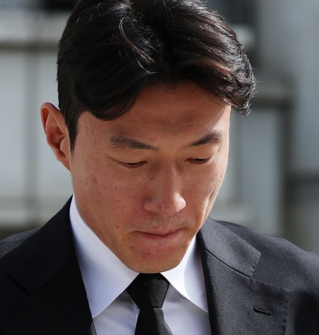 '불법 촬영' 혐의를 받는 축구선수 황의조(33·알라니아스포르)가 4일 오후 서울 서초구 서울중앙지방법원에서 열린 성폭력범죄의처벌등에관한특례법위반(카메라등이용촬영) 항소심 선고 공판에서 1심과 같은 징역 1년 집행유예 2년을 선고받은 후 법정을 나서고 있다. / 뉴스1