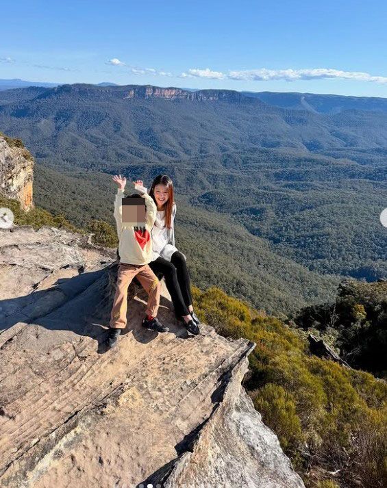 공개된 사진 속 그는 산맥이 내려다보이는 절벽 위 바위에 앉아 아들과 나란히 포즈를 취하고 있다. 편안한 차림으로 미소 짓는 모습이 담겼다.