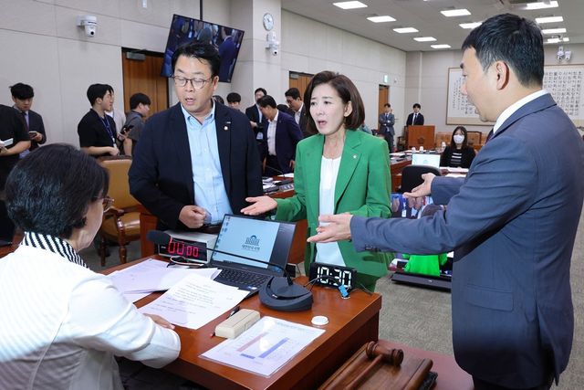 나 의원이 특검 수사 관련 대응을 위해 잠시 회의장을 나간 상황에서 박준태 국민의힘 의원은 "나 의원이 잠깐 이석했는데, 민주당의 자식과도 같은 특검이 또 국민의힘 원내대표실을 압수수색 하겠다고 찾아와 있어 현장에 대응할 분들이 필요해 잠깐 내려간 것"이라고 해명했다.