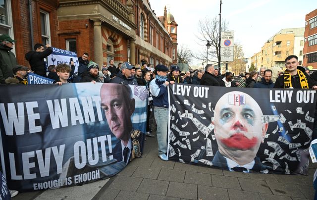 epaselect epa11901025 A fan group demanding the resignation of Tottenham Hotspur Chairman Daniel Levy and the British investment company with ownership of the team, ENIC, as they protest ahead of the English Premier League soccer match between Tottenham Hotspur and Manchester United, in London, Britain, 16 February 2025. EPA/DANIEL HAMBURY EDITORIAL USE ONLY. No use with unauthorized audio, video, data, fixture lists, club/league logos, 'live' services or NFTs. Online in-match use limited to 120 images, no video emulation. No use in betting, games or single club/league/player publications./2025-02-17 05:11:59/