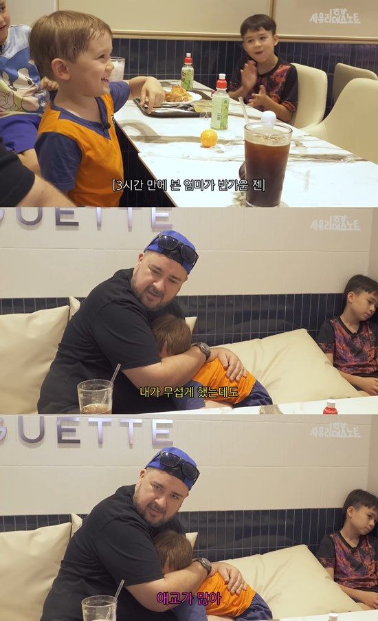 놀이터에서 재미있게 놀고 카페로 이동한 네 사람. 사유리가 나타나자 젠은 반가운지 입가에 미소를 띄우며 흐뭇함을 더했다. 샘 해밍턴은 엄마 사유리에게 "젠은 애교가 많다. 내가 아까 혼을 냈는데도 바로 안아 준다"며 젠을 향한 애틋함을 밝혔다.
