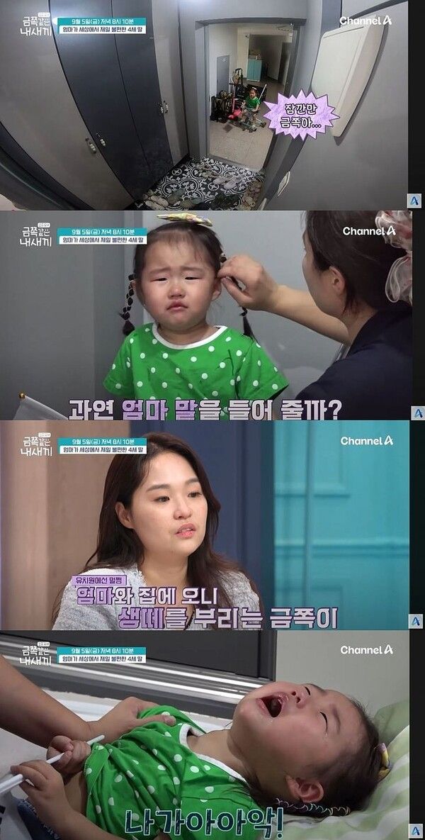 뉴시스 보도에 따르면, 5일 오후 8시10분 방송하는 채널A 예능 프로그램 '요즘 육아-금쪽같은 내새끼'에선 엄마를 불편해 하는 4세 딸 사연이 밝혀진다.