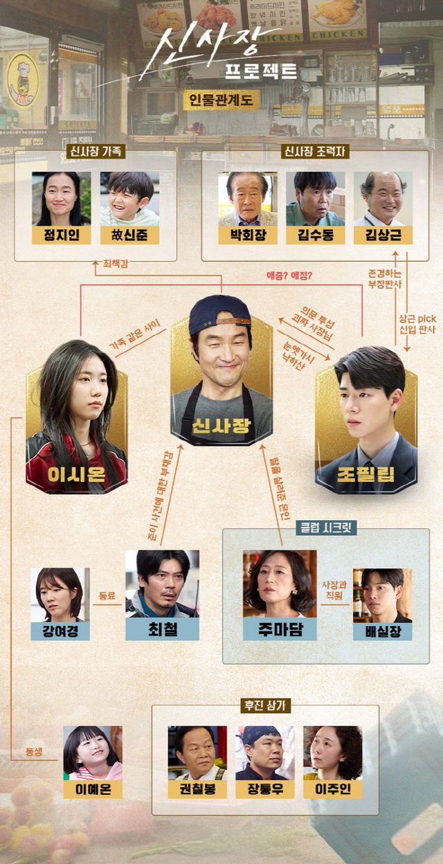 그런가 하면 박회장(전국환 분), 김수동(정은표 분), 김상근(김상호 분)은 오랜 시간 신사장과 함께하며 두터운 신뢰와 굳건한 의리로 그의 편에 서온 대표 조력자들이다. 특히 김상근은 신사장의 치킨집에 신입 판사 조필립을 낙하산으로 들여보낸 장본인이기도 하다. 레전드 협상가 시절부터 이어진 이들의 인연은 신사장이 다시 협상 히어로로 발돋움하는 데 든든한 버팀목이 될 예정이다.