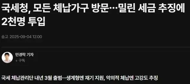 국세청, 모든 체납가구 방문…밀린 세금 추징에 2천명 투입 | 연합뉴스