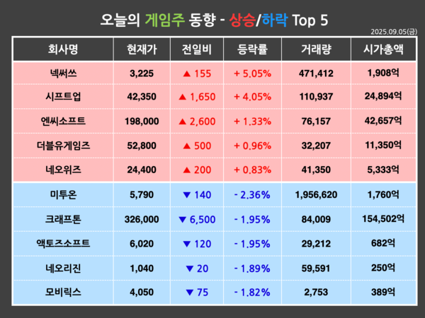 반면, 미투온은 금일(5일) 전거래일 대비 2.36%(140원) 하락한 5,790원에 장을 마감했다. 개인이 93,724주를 순매수한 반면, 기관과 외국인이 각각 2,000주, 92,430주를 순매도하며 장 초반부터 하락해 약세로 마쳤다.