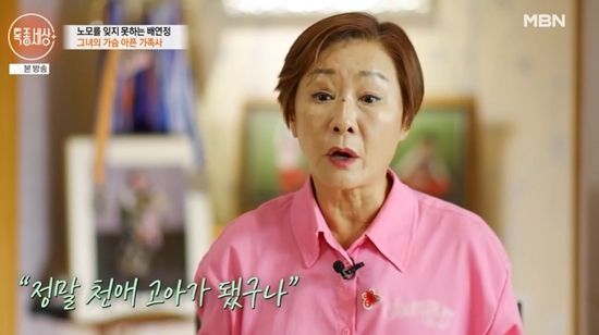 배연정은 11년째 치매로 누워계시다 두 달 전 새벽 돌아가신 모친을 떠올리며 "제가 형제가 있다든가 아빠라도 계셨다 돌아가셨다든가 일가친척이 많든가 그러면 의지하는 데가 있었을 거다. 그런데 아무도 없다"라며 쓸쓸함을 고백했다.