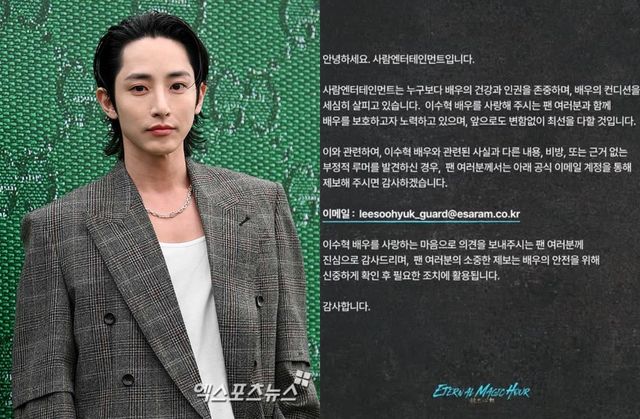 아울러 소속사는 "이수혁 배우를 사랑하는 마음으로 의견을 보내주시는 팬 여러분께 진심으로 감사드리며, 팬 여러분의 소중한 제보는 배우의 안전을 위해 신중하게 확인 후 필요한 조치에 활용된다"고 덧붙였다.
