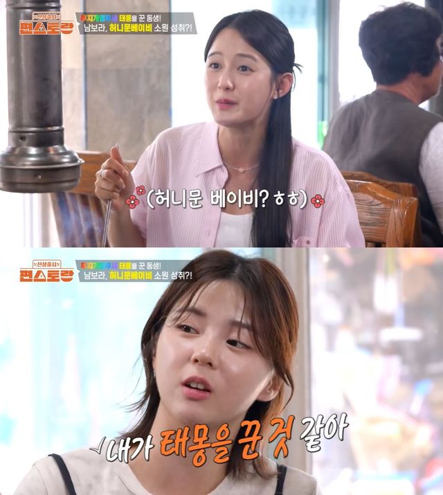 이어 남보라의 동생은 "신혼여행에서 허니문 베이비 그런거는 (없냐)"라며 "내가 최근데 태몽을 꾼 것 같아"라고 말해 눈길을 끌었다.
