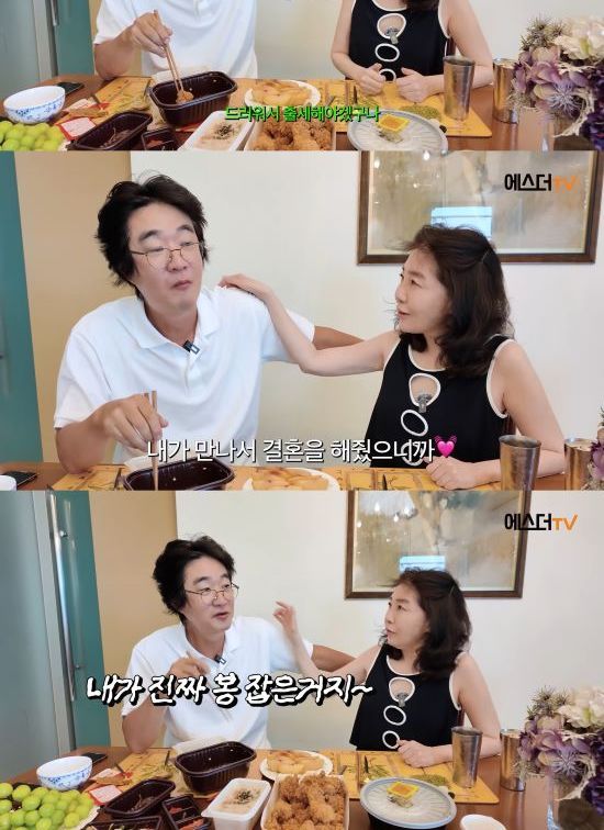 이를 들은 여에스더가 "혜걸 씨 허리디스크 수술하고 해군 중위로 있다가 나와서 혼자 외롭게 있을 때 내가 만나서 결혼을 해줬다"라고 하자, 홍혜걸은 "내가 진짜 봉 잡은거다. (여에스더가) 내 인생 최고의 봉이다"라며 아내에 애정을 드러내 눈길을 끌었다.