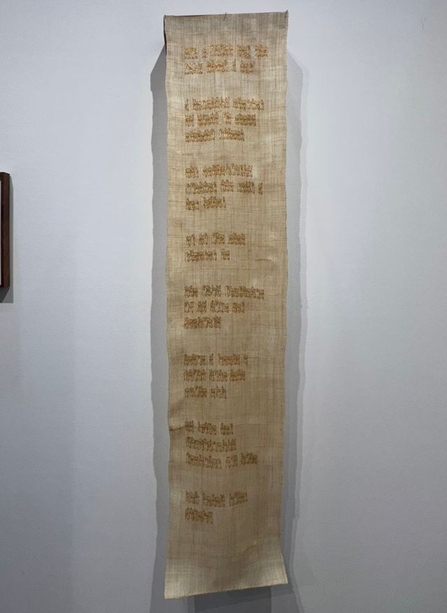 커먼웰스 앤드 카운슬(Commonwealth and counsil) 부스에서 만난 이강승 작가의 작품. 이강승의 작업에서 중요한 방식 중 하나는 ‘전유(appropriation)’라고 한다. 그는 앞선 세대의 작가나 운동가의 작업 그리고 기록을 주로 드로잉이나 자수를 통해 다시 들여와 새로운 의미를 부여한다. 리서치 과정에서 발견한 이미지와 기록은 흑연 드로잉, 삼베와 금실 자수, 세라믹 등 다양한 매체로 번역하고 전유된다. 자신의 손•신체로 오랜 시간 공들여 체화하는 방식의 작업을 통하는 것이다. 편집자의 일이 무엇을 번역하는 일과 닮았다고 생각하기 때문인지, 시간을 들여 체화하는 방식으로 책을 만들어온 입장이기 때문인지. 이강승의 작품에 여타의 설명 없이도 자연스레 이끌린다. 매일을 환기하는 작은 의식처럼, 밤마다 작가의 손끝의 결을 따라 새겨진 시간을 가만히 바라보고 싶은 마음.
