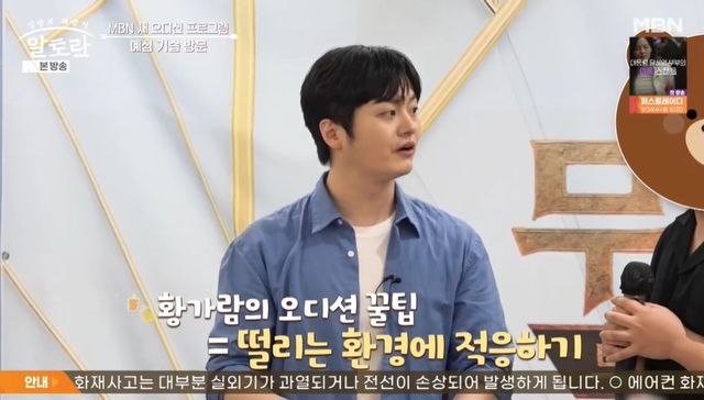 ‘알토란’ 녹화 전 오디션 현장을 찾아간 황가람은 “제가 사실 이 공간에서 연습하고, 아이들하고 같이 춤췄다”라고 떠올렸다. ‘나는 반딧불’ 노래를 부르는 오디션 참가자 앞에 나타난 황가람은 “저도 예전에 여기서 똑같이 오디션 봤다. MBN의 아들”이라고 뿌듯해했다.