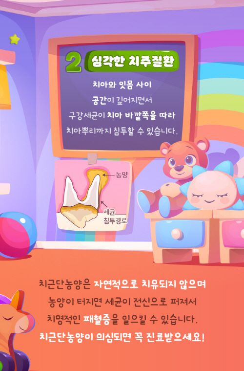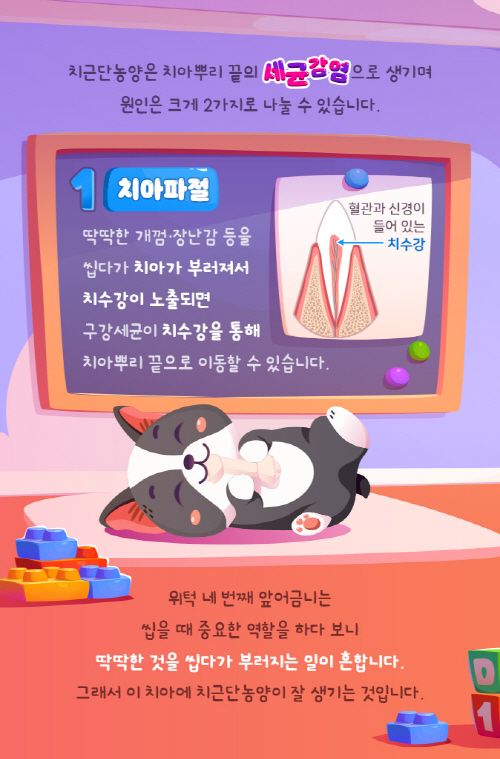 치근단농양은 치아뿌리 끝의 세균감염으로 생기며