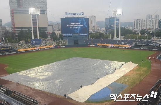 하지만, 오후 4시부터 내리기 시작한 거센 비로 대형 방수포가 일찌감치 깔렸다. 경기 정상 개시가 불투명해진 분위기 속에서 빗줄기가 다시 얇아지면서 오후 5시 40분 지연 개시로 결정됐다. 우천 정비 과정에서 추가로 비가 오지 않는다면 정상 개시가 유력해졌다.