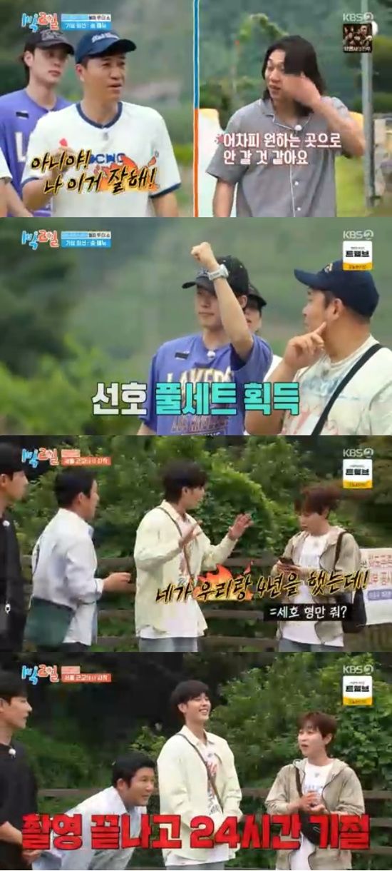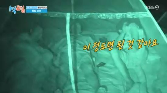 나머지 멤버들도 오른쪽 4인실로 몰리면서 왼쪽 4인실의 김종민과 유선호 2인실의 이준만 실내취침을 하게 됐다.